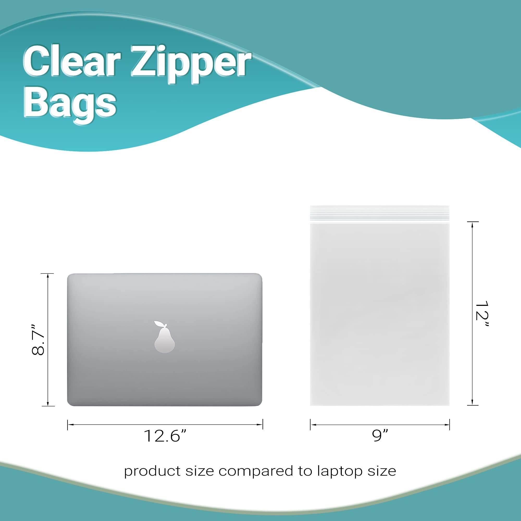 Pack of 1000 Clear Zipper Bags 9 x 12. Seal Top Polyethylene Bags 9x12. Thickness 1.25 mil. Plastic Poly Bags for Packing and Storing. Ideal for Indus