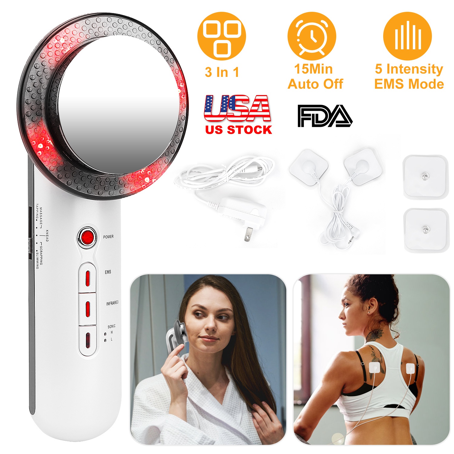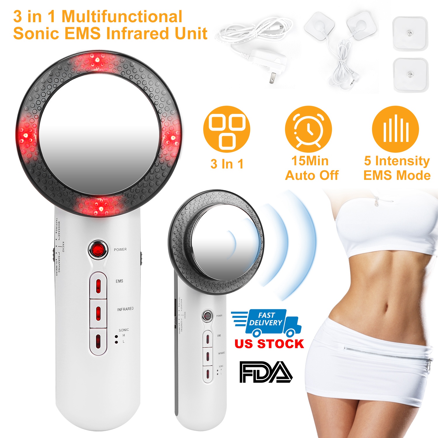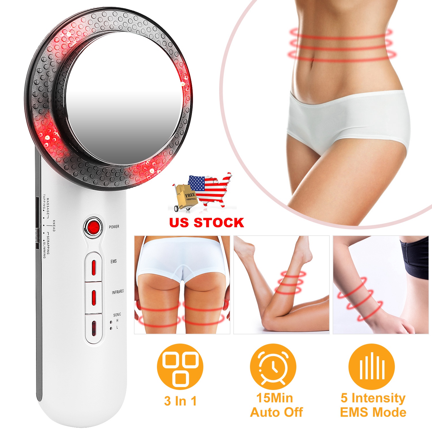 • * 3 IN 1 MULTIFUNTIONS: Come with 3 modes (EMS, Sonic and Infrared). Sonic function can burn excess fat on the arms, abdomen, legs, and waist. E-M-S function can massage and shape your body. Far infrared can brighten your skin. 3 functions to make your figure more perfect!