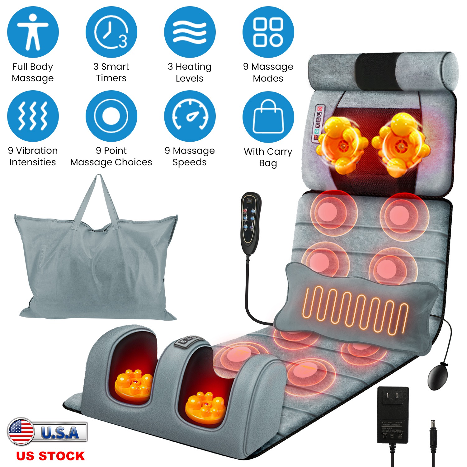 Full Body Electric Massage Mat Heating Vibration Massage Pad Cushion Back Massage Mattress Chair Pad with Neck massage Foot massage Head Pillow Inflat