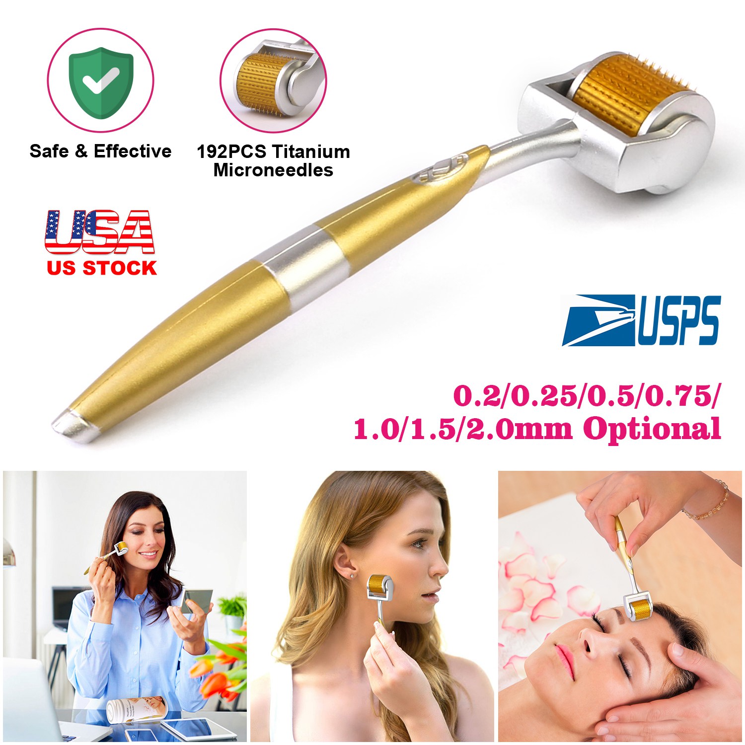 Derma Roller 192Pcs Titanium Microneedles Facial Roller Acne Scars Anti-aging Needling w/ Storage Container