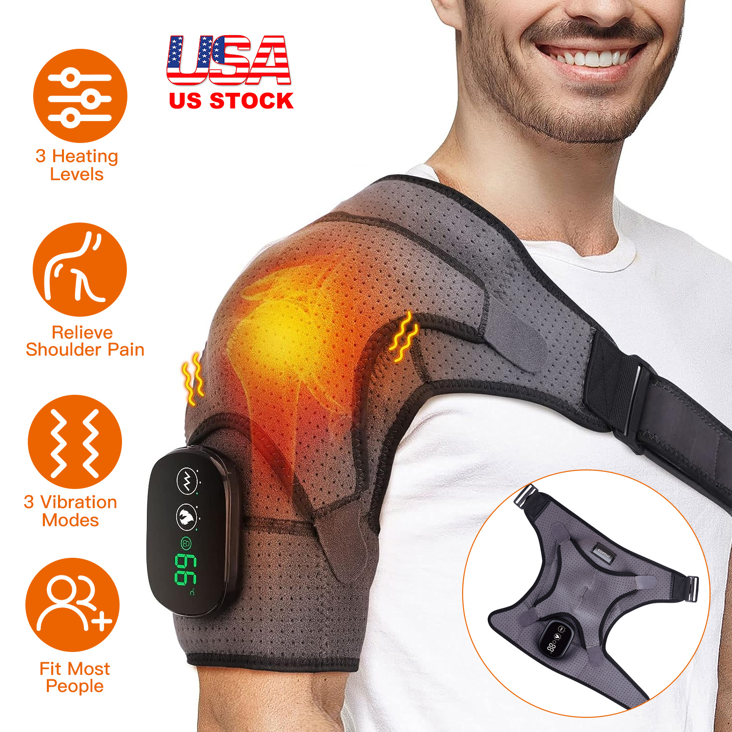 • Pain Relieve Shoulder Brace: The shoulder brace wrap combines heat and soothing vibration function, providing for pain relief and injury recovery. Heating function boosts circulation and reduces shoulder pain and swelling; and vibration function further relieves muscle soreness, cramps and muscle stiffness.