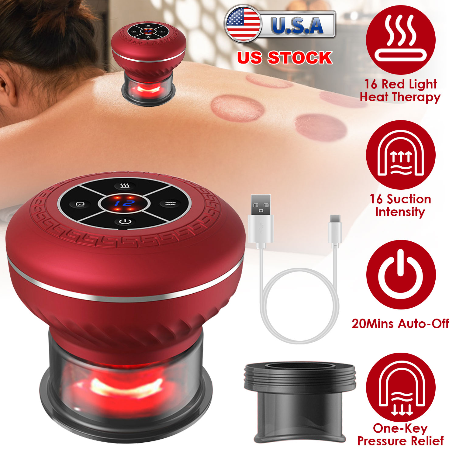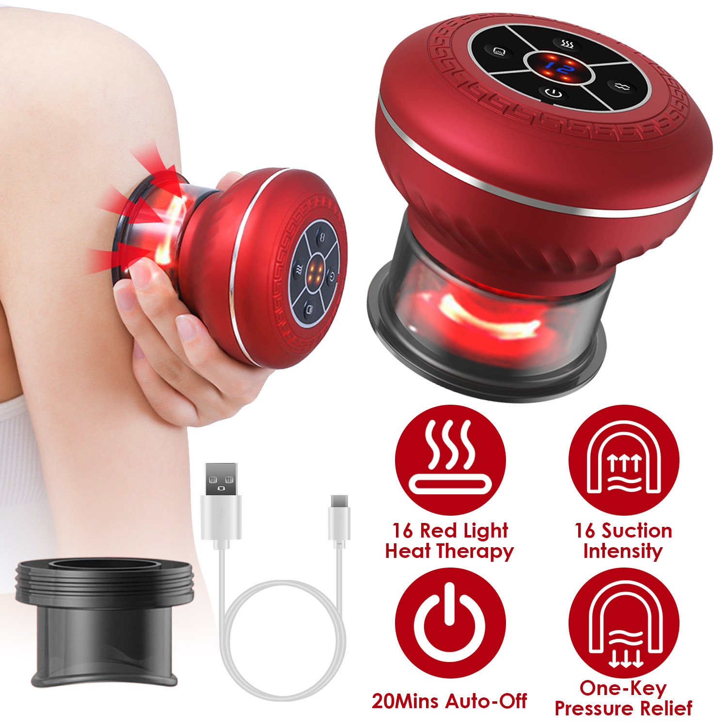 • 3 in 1 Cupping Therapy Set: Combined with cupping, scraping, and red-light therapy, our 3-in-1 electric cupping therapy massager is an economical and practical choice to help you enjoy professional and comprehensive massage at home. Suitable to be used on your back, shoulders, neck, legs, abdomen, this cupping therapy device is designed to effectively alleviate pain, improve skin firmness, reduce muscle soreness and cellulite, and accelerate post-exercise recovery.