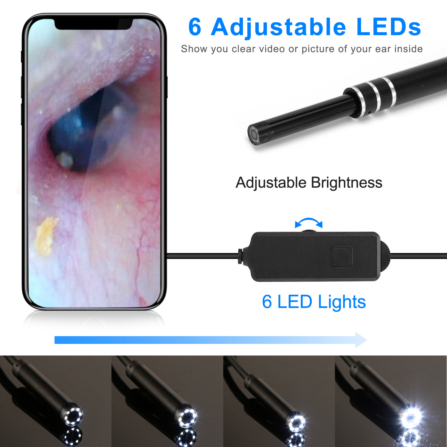 Home > Ear Endoscope Otoscope Visual Earpick Ear Cleaning Camera Ear Wax Removal Tool IP67 Waterproof 3 in 1 Borescope w/ 6 Adjustable LED for Android