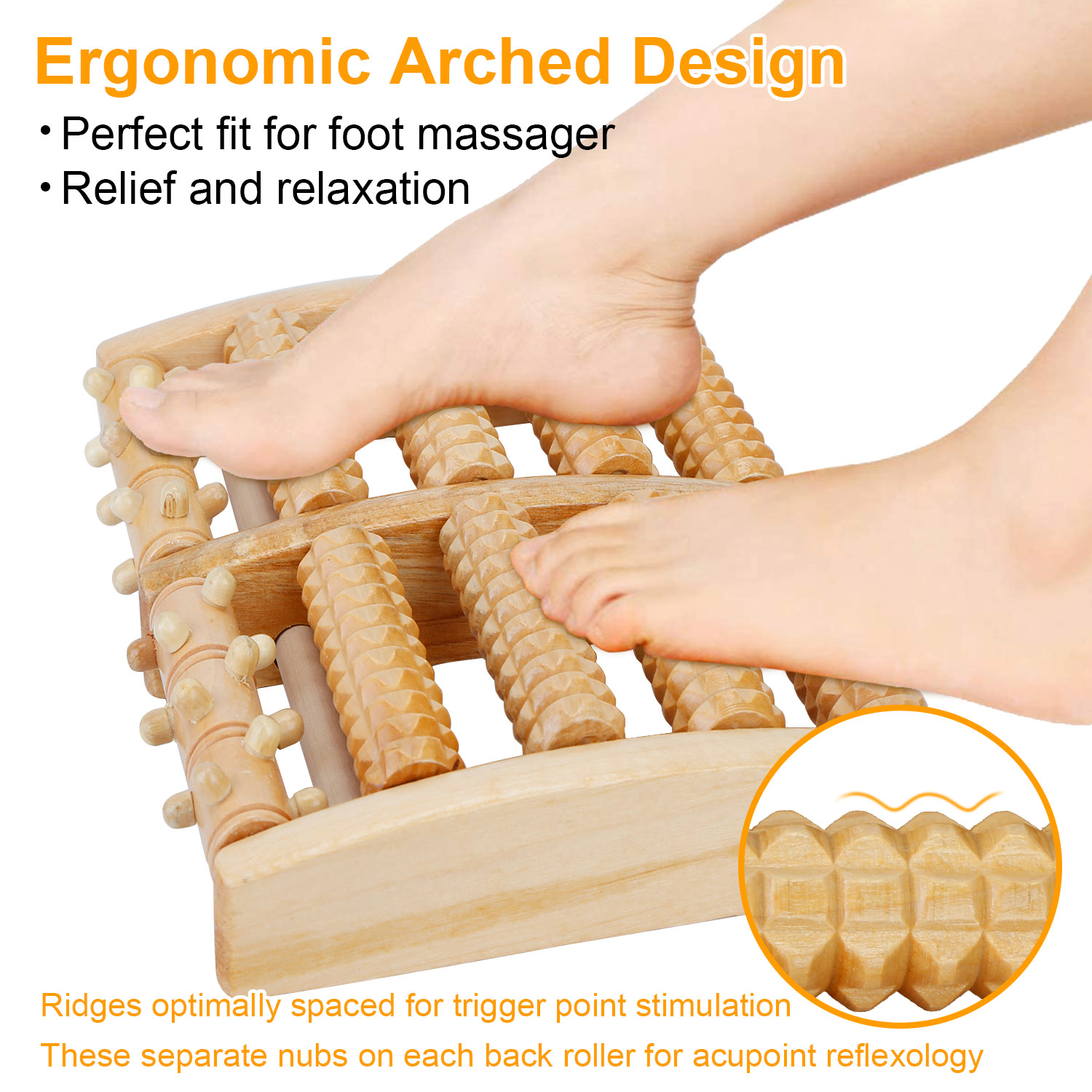 Massage Foot Roller Dual Wooden Stress Relief Roller Acupressure Massage Plantar Relaxation Shiatsu Massage for Foot Leg Back