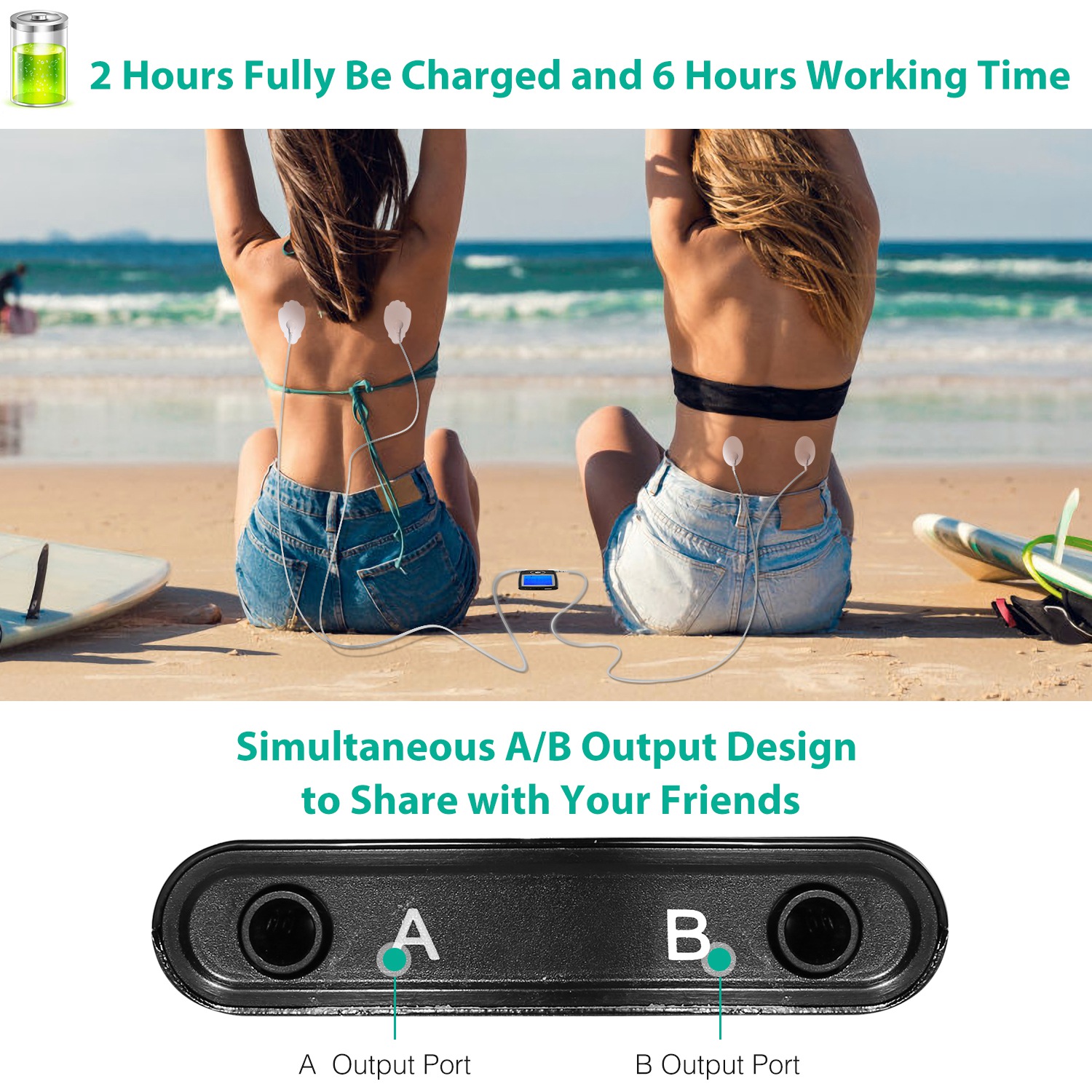 • Simultaneous A/B Output Design to Share with Your Friends: Designed with 2 wire sets and 2 output ports, 4 pads can be used in one person every time or you can share A/B port(2 pads) to your friend.